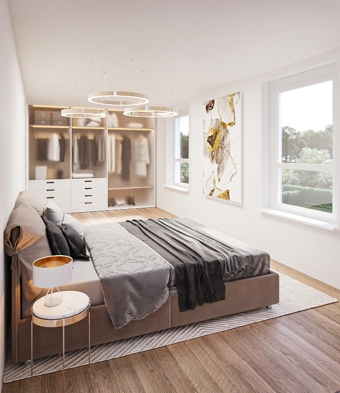 Die Wohnung verfügt über ein geräumiges Schlafzimmer, ein Kinderzimmer sowie ein separates Arbeitszimmer – ideal für Homeoffice. Ein großzügiges Badezimmer mit Wanne und Dusche sowie ein separates Gäste-WC sorgen für zusätzlichen Komfort. Praktische Abstellmöglichkeiten bieten die Abstellkammer und der separate Hauswirtschaftsraum.