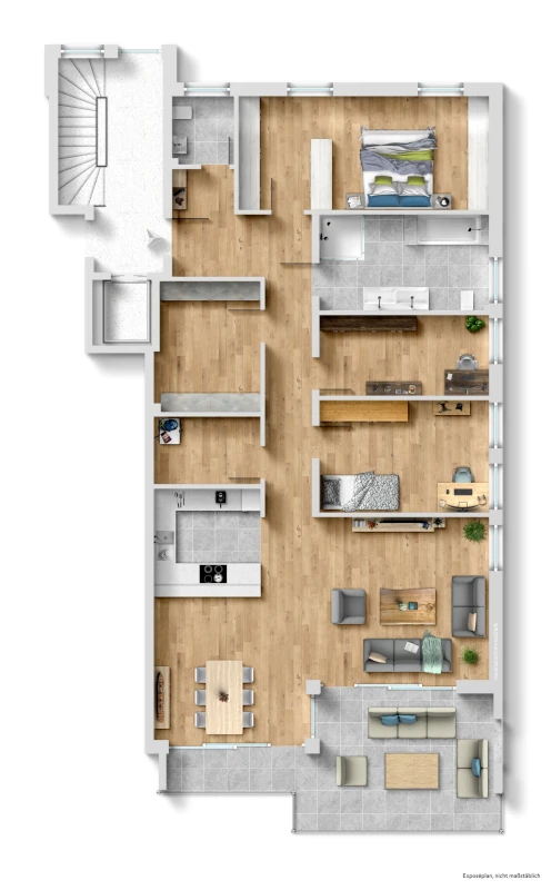 Diese moderne Obergeschosswohnung überzeugt mit durchdachtem Grundriss, großzügigem Platzangebot und hohem Wohnkomfort auf ca. 146 m² Wohnfläche.