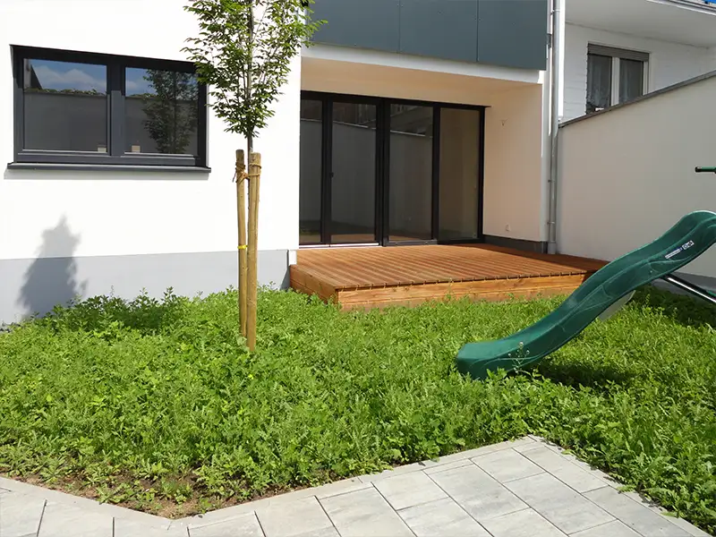 Neben dem angenehmen Raumklima profitieren die Bewohner von der energieeffizienten Bauweise nach KfW-70-Standard. Attraktiv auch das Innenleben: Lichtdurchflutete Räume, 3-fach verglaste Schallschutzfenster, hochwertige Bodenbeläge und die gehobene Ausstattung runden den Charakter des wertbeständigen Anlageobjektes perfekt ab. Die stilvoll ausgestatteten Tageslichtbäder schaffen mit ihren gedeckten Farben Ruhe und Klarheit und vermitteln eine angenehme Wellness-Atmosphäre. Lebensqualität, die sich auch „draußen“ fortsetzt, denn die großzügigen Terrassen und Loggien laden geradezu zum relaxen ein und verbreiten mit ihren Holzböden ein herrlich mediterranes Flair.
